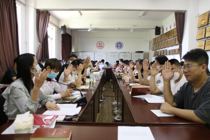 为确保新党员的质量,在经过了党支部一年的培养考察后,征求党内外群众意见,综合党员群众反映的问题及党组织调查核实情况。大会重点审议朱凯旋、王浩佳、杨玉风、王莹、任杏等33位预备党员的转正问题。首先,预备党员逐一宣读《转正申请书》,入党介绍人向支部大会介绍各预备党员的培养教育情况。然后,支委会向支部大会报告对预备党员的审查情况,并就预备党员能否转正进行充分讨论,并举手表决,一致同意接收这33位预备党员转正。