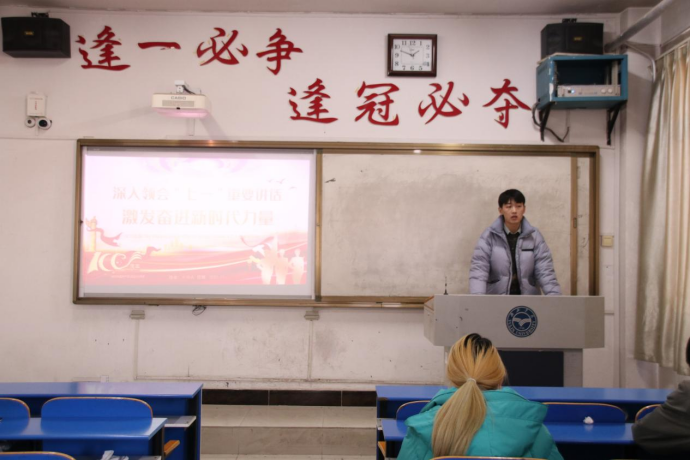 程一丹同学讲述“四个正确认识”分别是:正确认识世界和中国发展大势,正确认识中国特色和国际比较,正确认识时代责任和历史使命,正确认识远大抱负和脚踏实地。又为全体积极分子讲述当代青年的使命,我们应该秉承励志笃学,惟实尚能的校训,学好每一门课程,每一门理论,朝着自己的目标与方向不懈努力。面对各类问题与挑战时,始终保持清醒的头脑,坚定的立场,以及掌握思考的能力和足够的战略定力。实现伟大目标,进行战略抉择,不仅要有“不到长城非好汉“的进取精神,更要有”乱云飞渡仍从容“的战略定力。在青春的年华里,年轻的我们既要抬头望天,也要脚踏实地,才能走的长远,走的精彩。