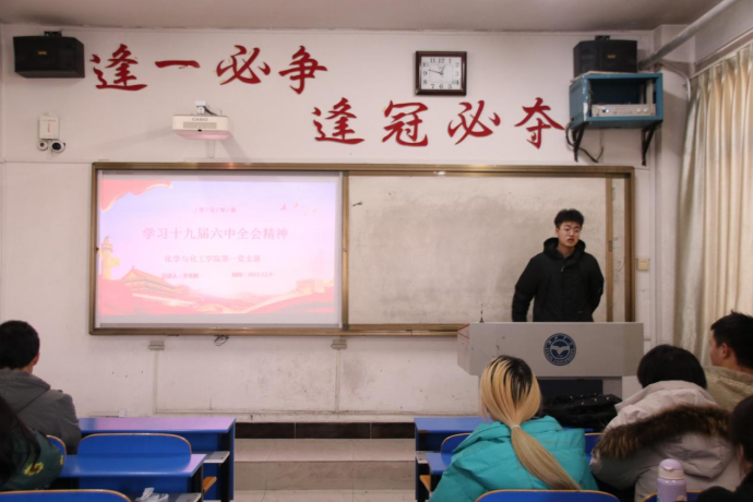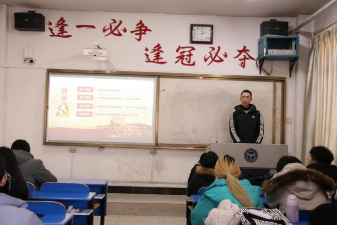 胡晟荣同学以“学习习近平总书记来陕重要讲话精神”为主题向全体积极分子讲述了习近平总书记陕西行,习近平总书记在榆林考察调研,谈红色情怀;在绥德考察调研,关切员工全面发展;陕北“好江南”。回望百年党史,千千万万共产党人为了理想信念不惜抛头颅、洒热血。眺望前方征程,我们要从党的百年奋斗中汲取前进力量,用红色精神滋养自己、激励自己,以昂扬的精神状态踏上新征途。