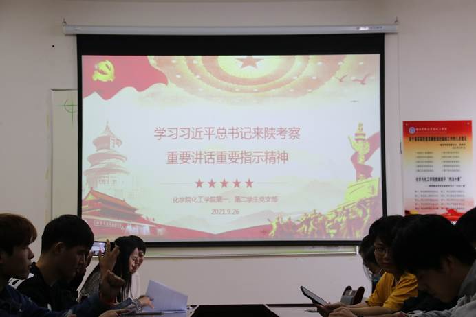 best365英国体育在线团总支书记徐绘老师指出全体员工党员要深刻认识习近平总书记来陕考察的重大意义,准确把握精髓要义。把学习宣传贯彻习近平总书记来陕考察重要讲话重要指示精神作为当下学习目标。化工学子要发扬光荣传统,充分运用红色资源,深化党史学习教育,赓续红色血脉。