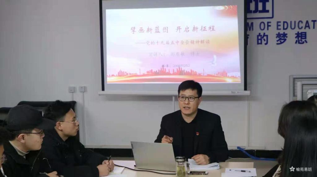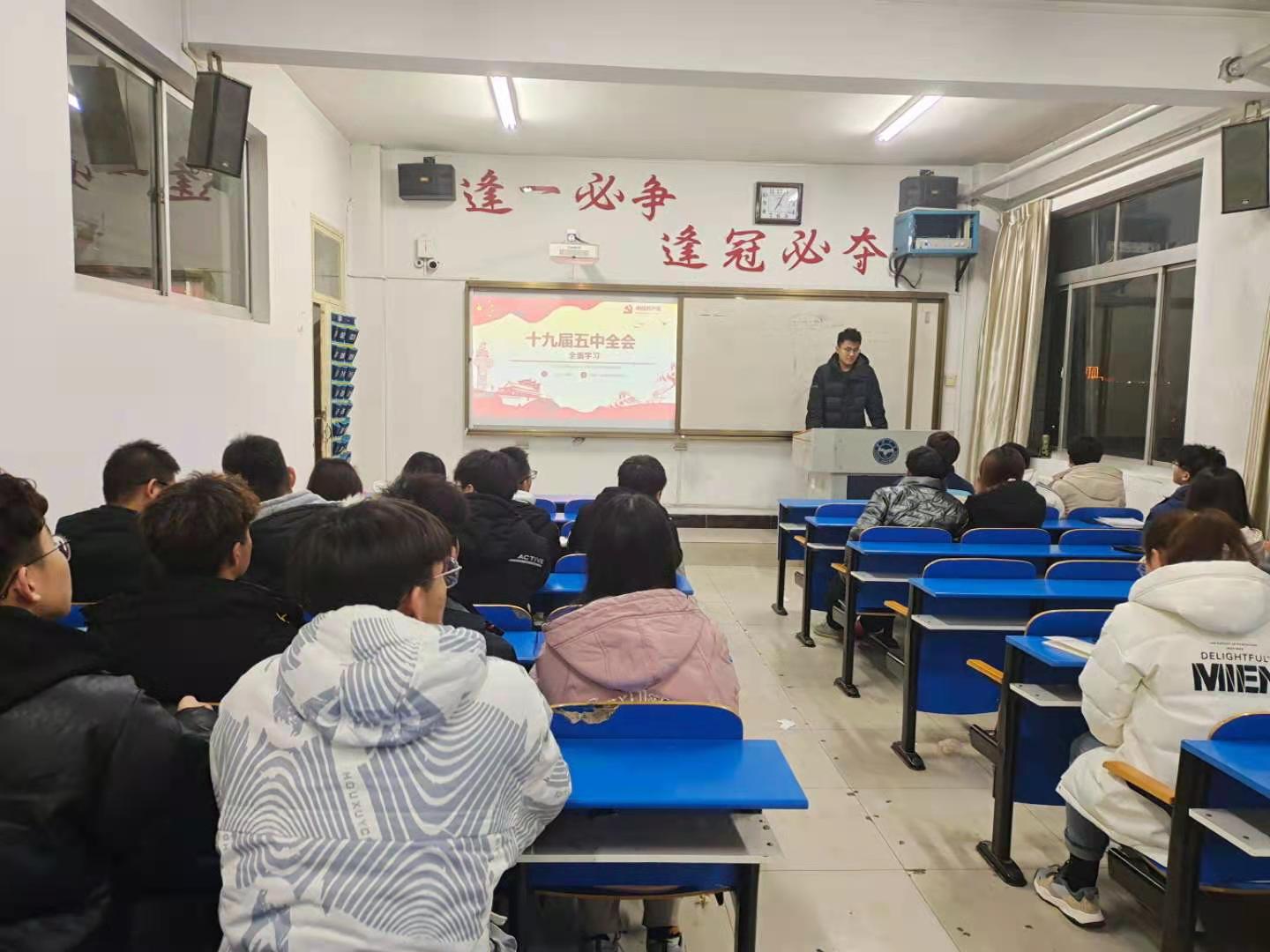 为学习贯彻党的十九届五中全会精神,2020年12月17日,公司于于5号教学楼310best365英国体育在线易班员工工作站办公室举办十九届五中全会老员工宣讲团培训,员工会团总支副书记郭煜作为公司十九届五中全会精神老员工宣讲团成员参加培训。同天,公司举办了学习贯彻党的十九届五中全会精神宣讲报告会,郭煜同学向各员工支部党员、各班团支书、班长进行宣讲,推动全会精神入脑入心、落地生根。