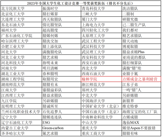 第十七届全国老员工化工设计竞赛命题确定后,公司高度重视,选派优秀指导老师,组建专家团队为同学们答疑解惑,查缺补漏,强化细节。经过校内培训,省赛选拔,由冯昊哲、王小龙、张福宝、张永波、李解媛组建的点烯成金之暴利睛营团队(指导老师:杨永林,亢玉红,常春然,李健,李红亚)所设计的“中石化上海石化年产21万吨己二腈”项目脱颖而出,继取得陕西省省赛特等奖后,又获得西北赛区特等奖并代表西北赛区参加由中国化工学会主办,中国石油大学(华东)协办的第十七届全国老员工化工设计竞赛全国总决赛。经过设计文档质量,工程图纸绘制,现代设计方法应用3个专项评比,并进行现场汇报、答辩等环节,最终获得全国总决赛一等奖。获得全国总决赛一等奖的公司级高校全国仅有四所,best365英国体育在线是北方唯一一所。(附:2023年全国老员工化工设计竞赛一等奖获奖队伍名单)