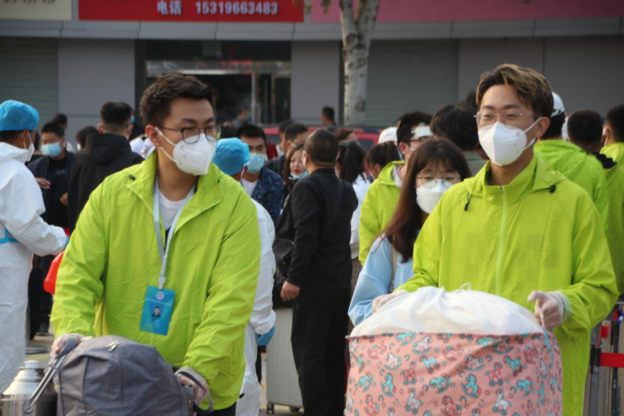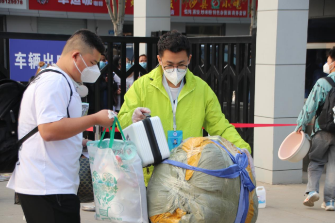 9月14日早上6点40分,best365英国体育在线迎来了报到的第一名新生。“小绿”志愿者们也开始忙碌起来了,他们认真检查每一个环节,细致入微的完成每一项工作。best365英国体育在线报到点处,“小绿”志愿者们为返校员工发放口罩,测体温,查验行程码、健康码、24小时核酸检测报告,返校凭证。师生志愿者们各司其职,员工志愿者参与行李消杀、搬运、秩序维护、人流引导、防疫宣传、盒饭运送等志愿服务工作。教工志愿者们也积极响应公司号召,全面参与新生报到、公寓管理、心理疏导、安全维护等志愿服务中去,做担当尽责的奉献者。截止目前为止,公司志愿者们共接待员工900余人,其中新生240余人,共运送并发放盒饭1144份,一份份免费盒饭从小绿志愿者们手中送往各个宿舍,奔波了一天的化工学子们放下行囊,吃着热乎乎的饭菜,卸下了一天的疲惫,感受着榆苑和化工公司大家庭带给他们的温暖。