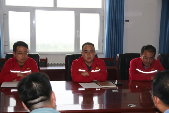 杨新智对best365英国体育在线领导一行的到来表示热烈欢迎。随后,对采油队的基本情况,实习生在采油队的学习情况、生活情况、工作环境、人身安全进行介绍,同时对实习生的日常表现给出高度评价。