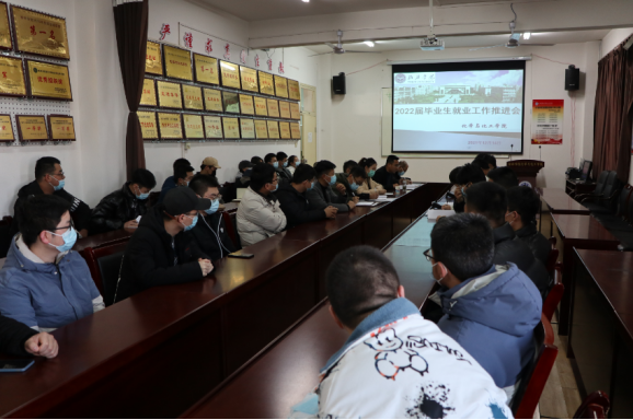 负责公司就业工作的白锦军老师向大家汇报了2021届毕业生就业情况,2021届毕业生共393人,截止12月,就业率为85.75%,其中国企就业率42%,考研录取人数51人,考研录取率13.3%,顺利完成本年度就业任务。分析了2022届毕业生就业形势,本届毕业生369人,已签订就业协议58人,就业率15.8%。由于受到疫情和双碳双重影响,本年度就业形势严峻,同学们务必改变择业观念“先就业、后择业”,积极参加线下和线上招聘会,争取早就业、就好业。