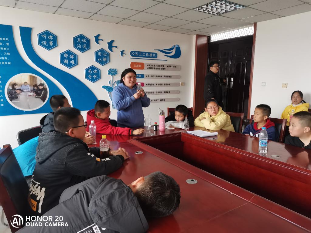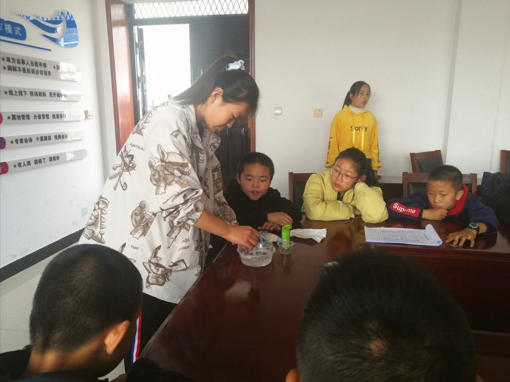 下午一点半,待去的成员在乒乓球台旁边集合,队长贾小奇清点了人数,做了简单的安全问题讲话,并安排好了每个人的工作。随后,带领全体成员步行到达公司社区,等待社区老师到来,进去教室为小朋友们准备实验,我们为小朋友们做了细致的实验步骤讲解,并且向小朋友们提出了相关本次实验的问题,让他们开动自己的大脑去了解本次的实验,介绍了做化学小实验常用的仪器等,让他们有一个初步的认识。