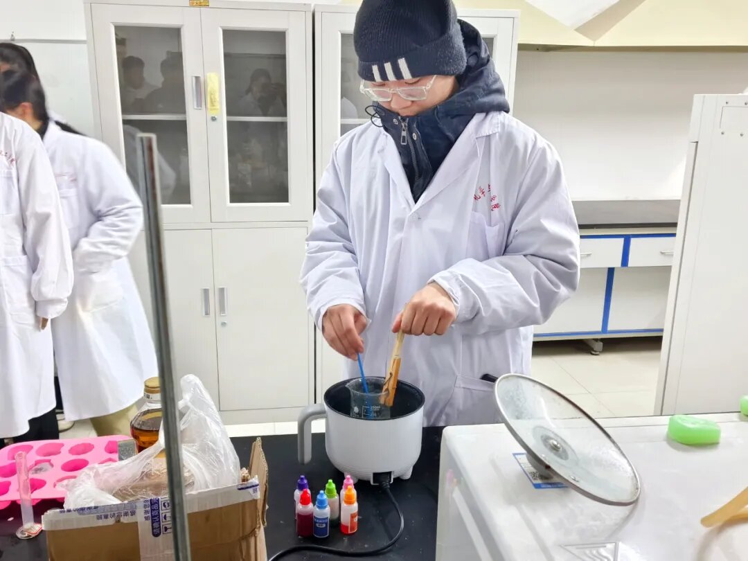 同学们积极投身于实践中,认认真真的完成每一步的操作,当一个又一个的肥皂形成,不仅让同学们获得满满的成就感,更是进一步响应着移动体验式化学科普馆平台“激发兴趣+培养创新+服务社会”的宗旨,让同学们在动手中感受学习的乐趣,化学的魅力。