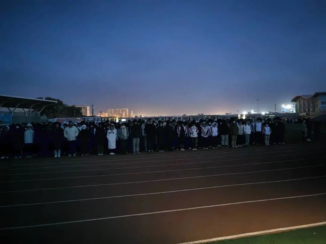 国旗护卫队踏着坚定的步伐、目光坚毅、整齐划一,护送国旗进场。升旗手振臂一挥,五星红旗在雄壮的国歌中冉冉升起,全体师生庄严肃立,齐唱国歌,礼敬国旗。