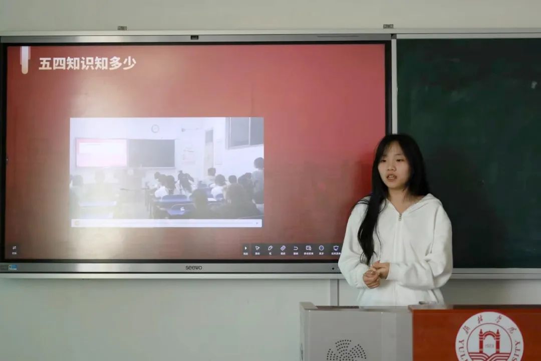 在报告中,各班团支书通过PPT条理清晰地按照活动的背景、实际内容、精心策划以及总结收获,逐一为大家详细解读了各班级团日活动的组织实施过程。生动再现了团支部在五四精神引领下,如何在日常学习和生活中积极开展丰富多彩的活动。同时,在各班级播放的活动视频中,同学们或激昂慷慨地朗诵五四运动时期的经典诗文,或深情讲述青年先辈的英勇事迹,或热烈讨论新时代青年的责任与担当。这些画面不仅展示了同学们对五四精神的深刻理解和积极践行,也体现了各班团支部在推动校园文化建设、提升青年员工思想政治素质方面所发挥的重要作用。