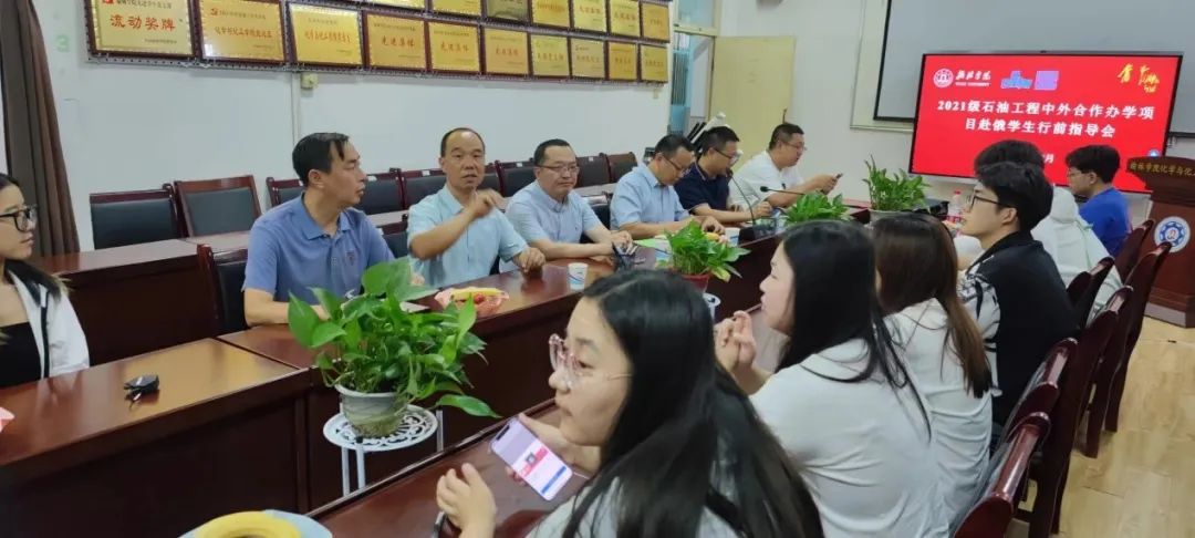 7月4日,公司在4号教学楼502会议室举办2021级石油工程中外合作办学项目出国员工行前指导暨欢送会。国际交流与合作处处长吴疆、化学与化工公司党总支书记陈小辉、经理常春然、常务副经理王爱民、石油工程专业部分老师及2021级22名赴俄员工参加会议。会议由公司常务副经理王爱民主持。