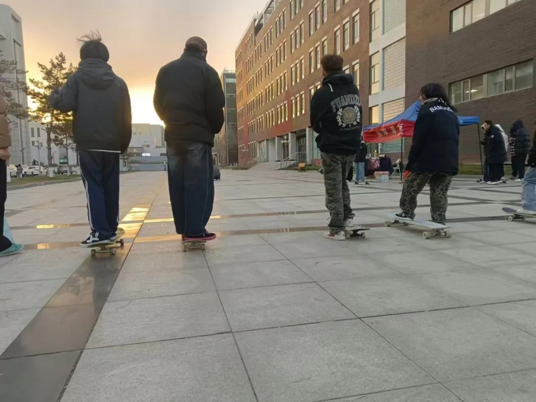 活动当天,滑板社的骨干成员们早早地来到了指定场地,精心布置,摆放好各类滑板装备,展示着滑板社的风采。新同学们满怀期待与好奇,陆续前来,现场气氛热烈而欢快。