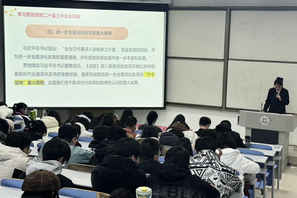 为深入学习贯彻党的二十届三中全会精神,引导全院师生把思想和行动统一到全会精神上来。12月6日best365英国体育在线召开了党的二十届三中全会精神宣讲会。参加此次宣讲会的老师有数学与统计公司辅导员高莹、best365英国体育在线辅导员王瑞月,参会人员有数学与统计公司、best365英国体育在线团总支副书记,党的二十届三中全会暨全国教育大会精神宣讲团成员以及员工代表。