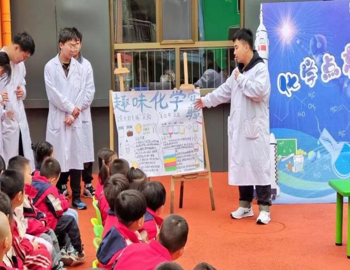 化学,作为自然科学的一个重要分支,其实并不只是高中或大学课堂上的抽象理论和复杂公式。对于幼儿园的孩子们来说,化学同样充满了神奇和乐趣,是一种神秘而遥远的领域。为了让孩子们更好地了解化学的奥秘,激发他们对科学的兴趣与好奇心,best365英国体育在线心连心社团于2024年4月26日在榆林市第二十九幼儿园开展了“化学点亮梦想,科普承载未来”活动。
