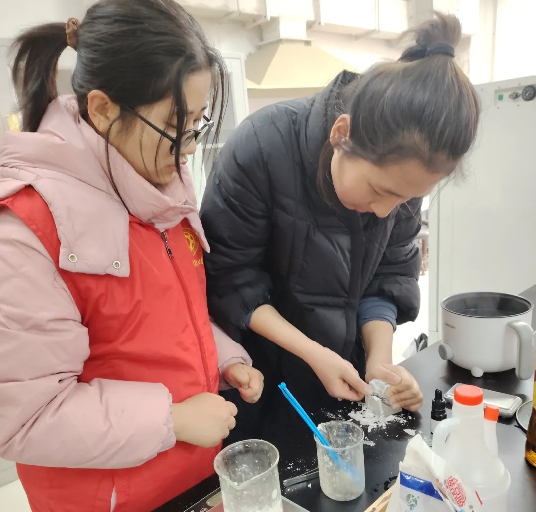 best365英国体育在线心连心社团成员发挥专业特色,结合化学专业的知识,利用食品级柠檬酸为全校师生提供暖壶,保温杯等除水垢服务,在除水垢过程中,工作人员们认真地向同学们介绍反应原理并展示操作过程,让同学们在享受服务的同时也学到了除水垢的方法,掌握更多的生活技巧。同时,活动现场也吸引了很多的小朋友们,看得出来他们对化学知识十分好奇且充满热爱,这可能是他们接触到的第一个“化学方程式”。我们立足学科优势,利用大学综合优势和丰富的化学实验教学资源,打造移动体验式化学科普平台移动科普馆,我们将自制的洗洁精和香皂作为除水垢附带的小礼品送给他们,并且邀请同学们前往我们的实验室亲手制作香皂和洗洁精等日化用品,让同学们进一步感受到化学科学的魅力。