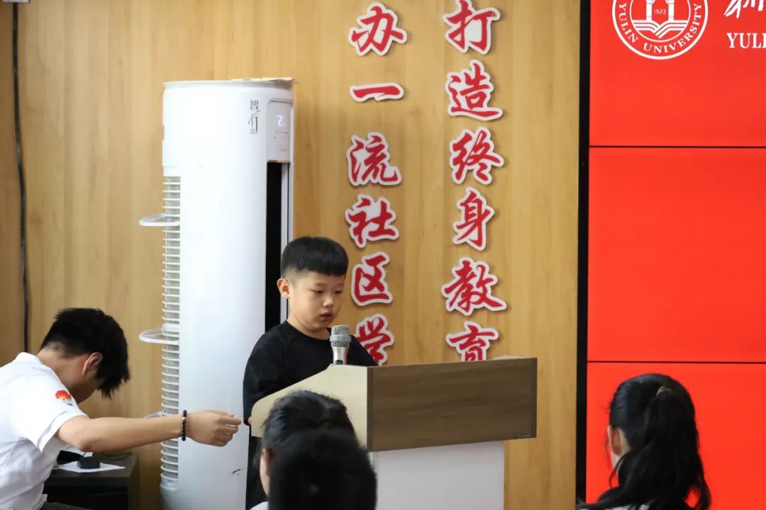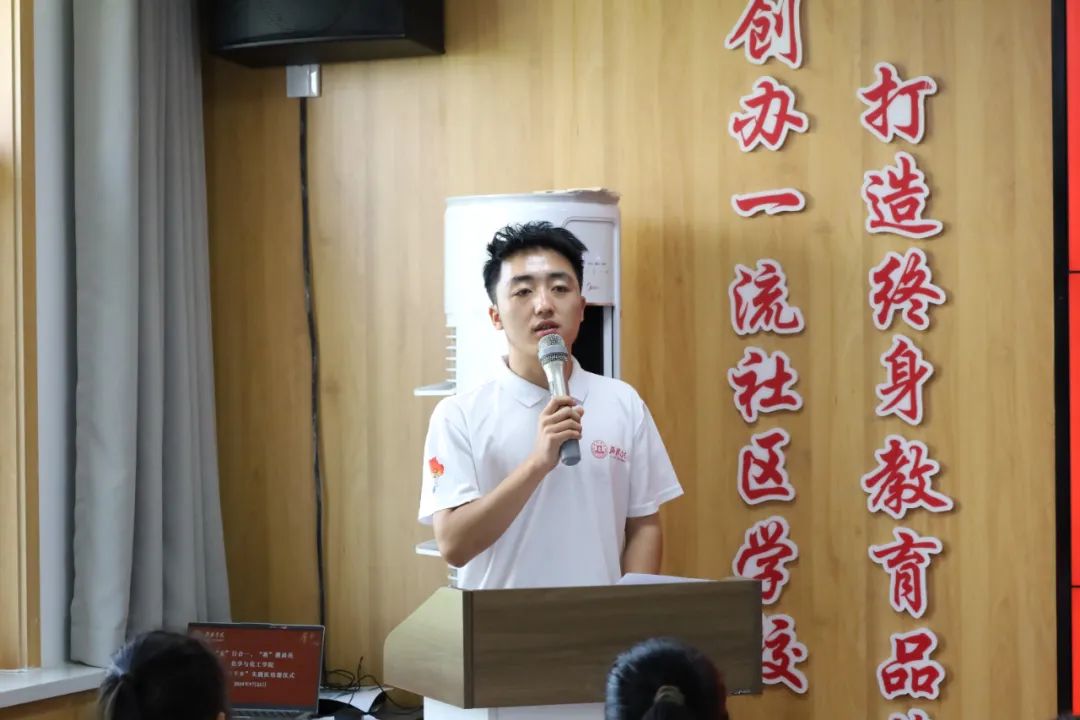继两位书记讲话之后,由公益课堂员工代表张昊宇、申梓祺进行发言,他们觉得,这次公益课堂是社区给他们的一个平台,一个了解自己课外知识,解放大脑、放松身心、寓教于学的平台。他们也很乐意借此机会,来学习平时自己学不到的知识,也非常感谢化工院“‘支’行合一,‘教’灌晨花”暑期“三下乡”社会实践队的各位志愿者老师来帮助他们认识平台之上的这一方新天地。以后,他们会继续秉持在公益课堂上的求知精神,不断求索,争做栋梁。