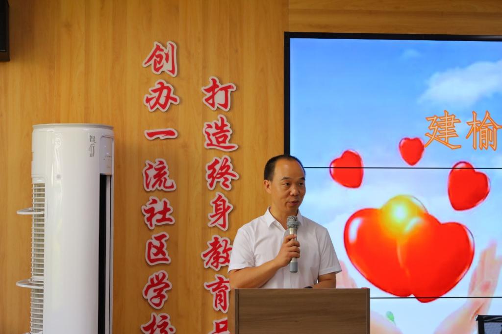 在建榆路社区服务中心举行建榆路社区新时代板凳暑期公益课堂开班仪式,由航宇路街道建榆路社区党支部书记兼居委会主任陈程远书记主持,化学与化工公司党总支书记陈小辉老师、航宇路街道办事处副主任李彦兵主任、建榆路社区公司负责人陈林老师、化学与化工公司党总支副书记张迪老师、党总支秘书白锦军老师、王瑞月老师、志愿者全体成员及各位员工和家长参加。