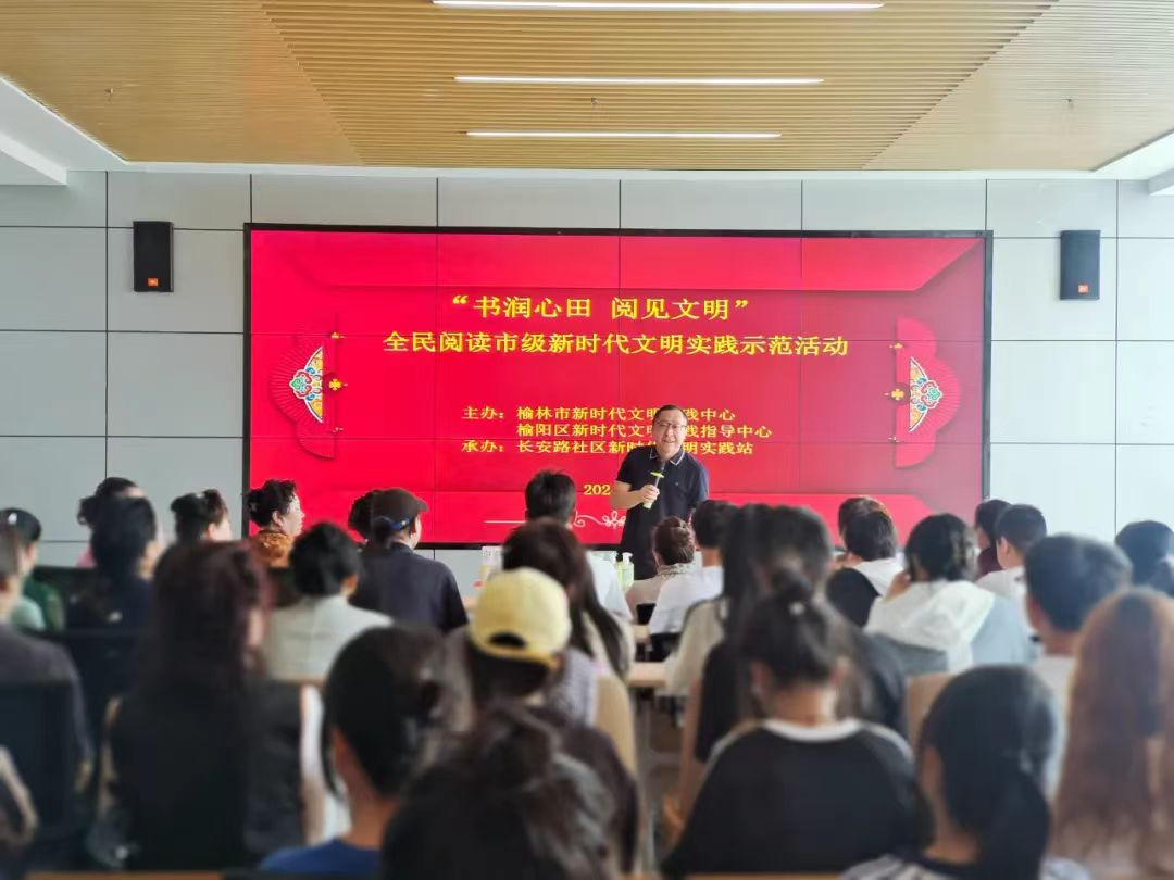 此外,还邀请了最爱读书的榆林人获得者、榆林民间学者联合会副会长王志安老师进行主题分享,老师通过典型事例的列举阐明了阅读的重要意义。他与读者面对面交流,分享他的阅读心得和创作经验。公司志愿者们在良好的学习氛围中认真听讲,感受阅读魅力,提高阅读兴趣。最后就老师所分享的内容进行了交流发言,大家就自己的体会畅所欲言,其中一位居民大爷对老师的分享给予了很高的评价,并希望此类活动能够在全市范围内大力推广,让大家在轻松愉快的氛围中共同交流、共同进步。