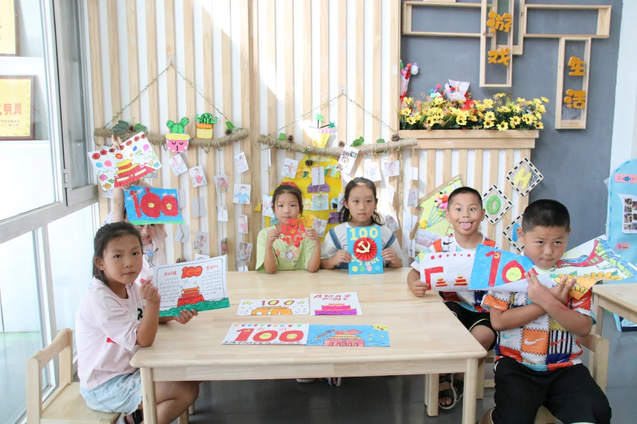 实践团成员指导小朋友们制作蕴含红色元素的剪纸和绘画作品,来表达对党的热爱和真切祝福,彰显了信仰与忠诚的力量,在培养员工良好的审美观和艺术素养的同时,也充分体现了新时代少年儿童“学党史、颂党恩、听党话、跟党走”的热情。