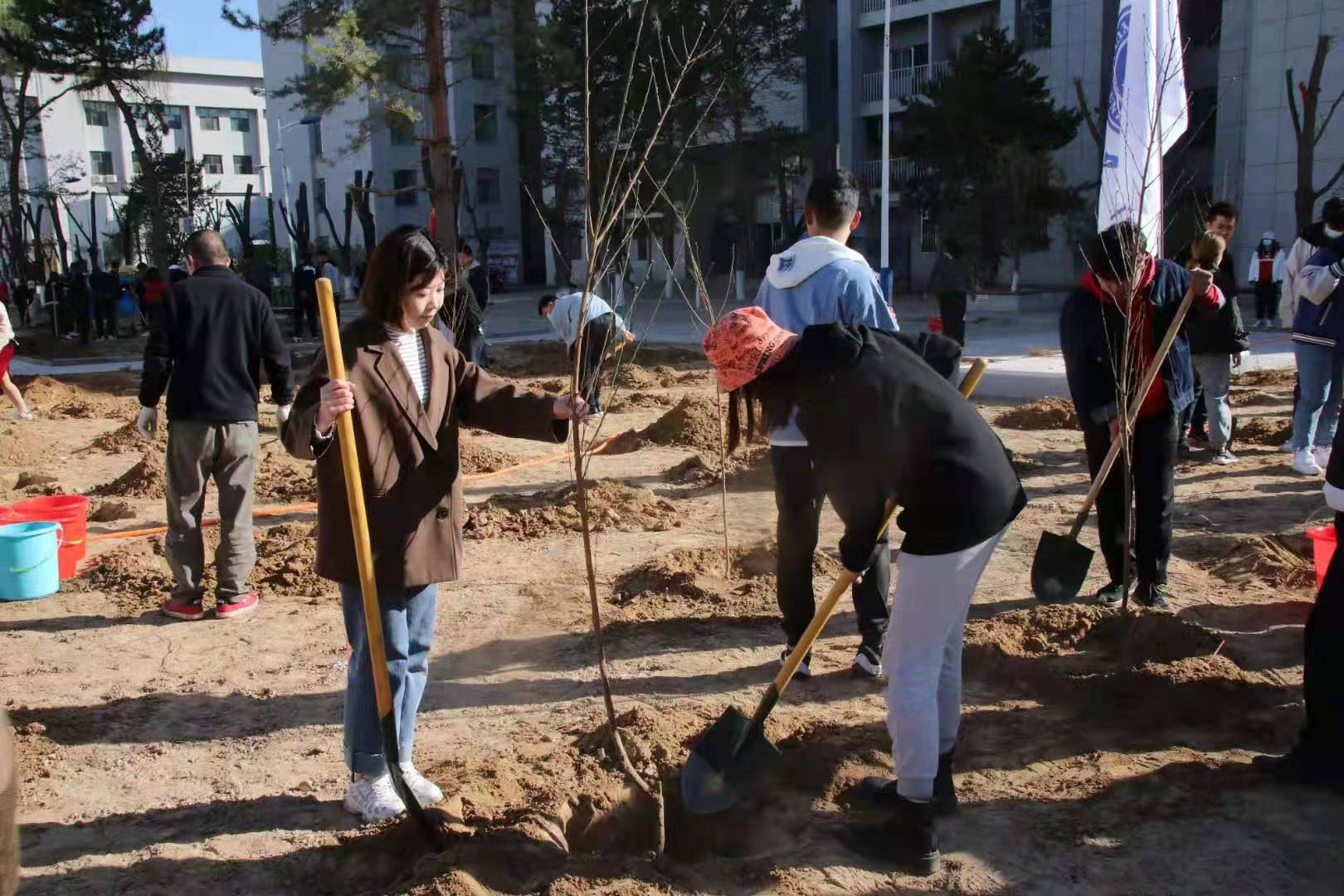 为巩固提升国家森林城市建设成果,加快推进黄土高原生态文明示范区建设步伐,让公司师生更好更方便地参与国土绿化,树立植绿、爱绿、护绿新风尚,4月17日上午,公司领导老师带领师生志愿者们在1号教学楼后方空地上进行了植树活动。