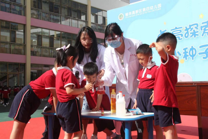 正值六一儿童节,而对世界的好奇是孩子们的天性,心连心志愿者们来到榆林高新区第四幼儿园进行“点亮探索之旅,科技筑梦未来”实验科普活动,让我们和小朋友一起,用生活中随处可见的物质,感受化学的魅力。