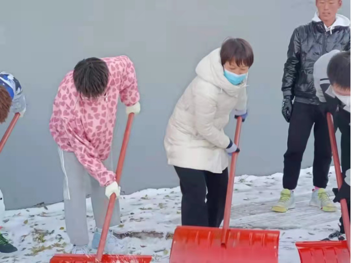 扫雪活动开始后,大家积极的投入到了其中,拿着铁锹来到区域内,从道路两端开始清理积雪。寒风凛冽,但这丝毫不影响同学们的热情,乐在其中,扫雪队伍也成为校内一道靓丽的风景线,最终经过有条不紊的相互配合终于将路面恢复如初。同学们用自己的双手为自己和他人提供了方便,也为打造一个安全、洁净、和谐的文明校园贡献了一份力量。
