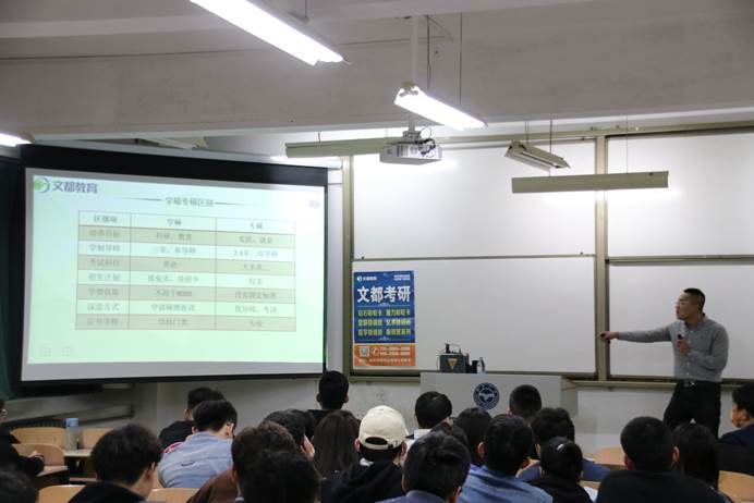 石老师分别细致地讲解了研究生考试的流程周期与大致时间节点,对应不同的阶段同学们需具备的条件和应重点注意的细节,解释了一系列在考研过程中可能涉及到的政策。在择校问题上,石老师提到,适合的远比更好的,同学们根据综合因素谨慎选择考研院校,尽早筹备规划,准备需要的资料文件。石老师向同学们提供了获取及时考研讯息的网站,给同学们指出了多样的研究生讯息获取途径,鼓励同学们运用多方平台去充分了解自己目标考研的院校。