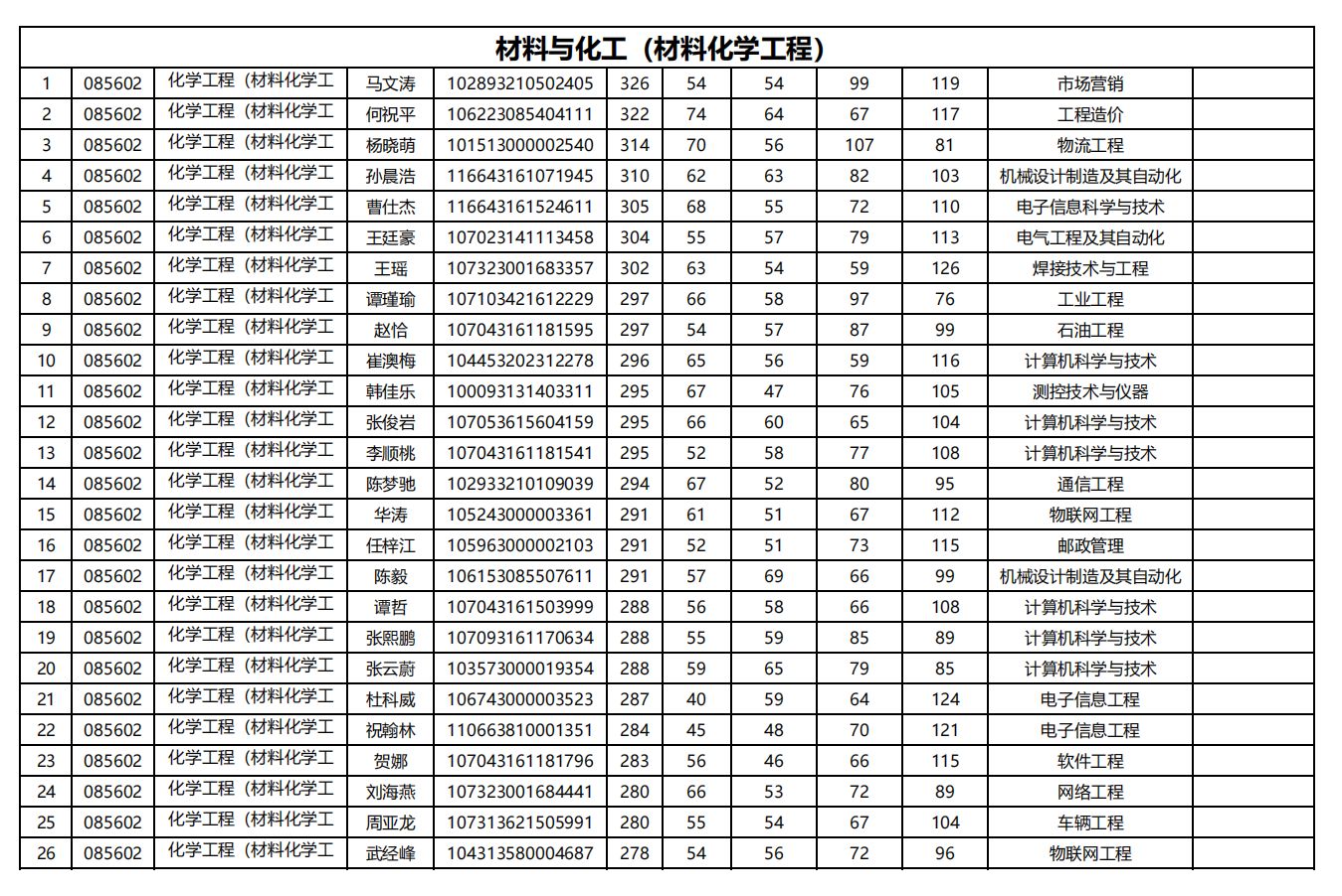 一、调剂志愿第一批次复试考生名单