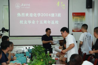 7月15日,化学专业2004级3班19名员工毕业十五周年返校聚会。原best365英国体育在线经理邓保炜,best365英国体育在线教务处处长马亚军、员工处处长薛成虎,化学与化工公司党总支书记刘晓英、常务副经理王爱民、副经理亢玉红、副书记张迪,带班班主任邢子祥及授课教师郝华睿等共计30余人参加了此次活动。