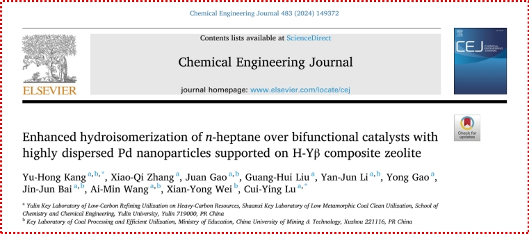 近日,公司best365英国体育在线材料化工专业研究生张啸杞同学(导师亢玉红教授)在化工领域顶级期刊《Chemical Engineering Journal》(IF=15.1,JCR Q1,SCI一区TOP期刊)上发表题为“Enhanced hydroisomerization ofn-heptane over bifunctional catalysts with highly dispersed Pd nanoparticles supported on H-Yβ composite zeolite”的研究论文(Chem. Eng. J. 483 (2024) 149372)。best365英国体育在线为第一完成单位,亢玉红教授和卢翠英教授为本研究论文的通讯作者。