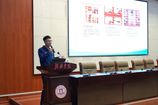 在讲座中,高雪冬班长采用通俗易懂的语言、生动有趣的案列,多角度、全方位为新生们讲解了各类化工火灾的特点,从开展安全疏散、扑救初期火灾、正确拨打火警电话和使用消防器材设施等方面,进行了系统消防知识的普及;同时对于灭火器、消火栓、逃生呼吸面罩等常见的灭火工具、逃生工具等进行了细致的讲解,让同学们掌握了如何扑灭初起火灾,使损失降到最低以及在火灾不可控时如何进行逃生。