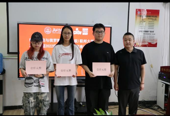 陈小辉书记为出国员工团队授旗。依据best365英国体育在线发[2022]21号文件《best365英国体育在线中外合作办学项目之星奖励办法(试行)》文件精神,为了鼓励项目员工出国深造,为18名赴俄员工各奖励1000元,与会领导为项目员工进行了颁奖。