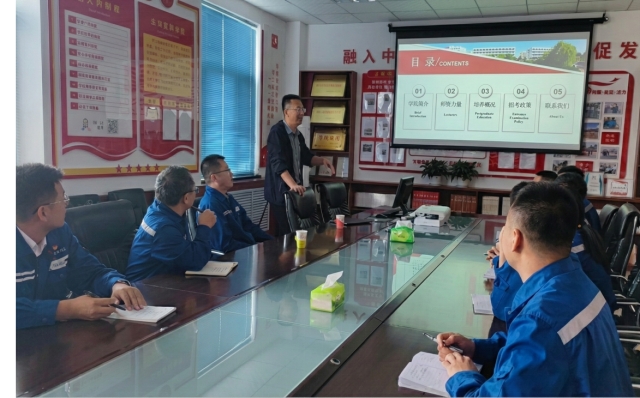 宣讲会上,亢玉红教授面向企业技术骨干及有提升学历意愿的员工,详细介绍了公司的学科特色、科研平台及团队力量。结合化工企业的实际需求,亢经理重点解读了公司在解决工程技术难题方面的科研优势,并阐述了研究生教育对于提升工程技术人员专业素养与创新能力的重要意义。鼓励企业员工通过攻读研究生学位,将理论学习与生产实践相结合,实现个人职业发展与企业技术进步的双赢。