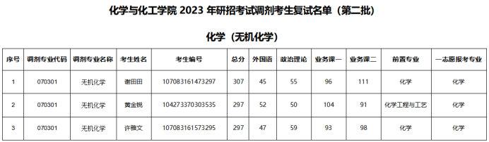 一、调剂志愿第二批次复试考生名单