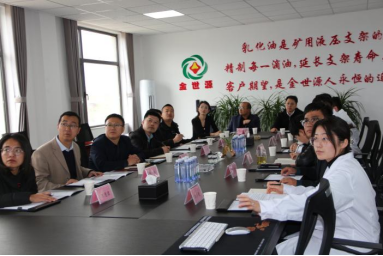 会前,王爱民一行参观了金世源矿用油品有限公司的生产装置区和产品研发中心,详细了解了公司的发展历程、企业文化、工艺流程、产品优势、装置产能、技术发展与创新等情况。