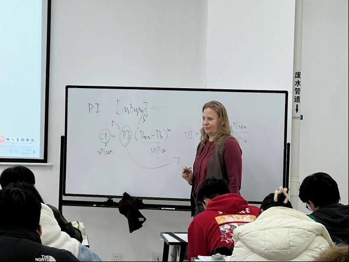 经过上一个学期油藏工程课程的学习,同学们对柳德米拉老师已经比较熟悉,也能更好地适应外教老师的授课方式。课程开始,外教老师介绍了该课程的基本特点和考核要求,并强调该课程会采用过程化的考核模式,考核内容包含互动参与、课上展示、课堂测验和期末考试,然后详细讲解了关于钻井过程中各种压力的相关概念。