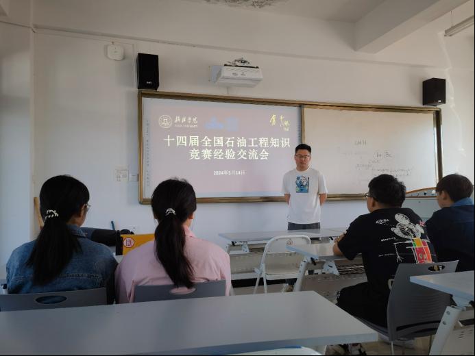 5月14日,第十四届中国石油工程知识竞赛经验交流会在逸夫楼B601教室顺利举行。该知识竞赛是第十四届中国石油工程设计大赛的系列活动之一,旨在普及石油工程知识,增强专业素质,促进学术交流,拓宽研究视野,培养高素质石油人才。竞赛由中国石油学会、中国世界石油理事会国家委员会、中国石油教育学会主办,中国石油大学(北京)承办。参加本次经验交流大会的有石油工程教研室主任白云云老师和杨桂林博士,以及即将赴京参加比赛的彭天炎、任可、毛嘉玉和陈显焱四位同学,会议由杨桂林主持。