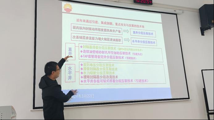 公司石油工程教研室先后组织石油设计大赛动员会、赛题分析会、作品评审会、经验交流会等环节,先后由王乐博士主持召开设计大赛动员会,张皓宇博士结合自身工作经验和参加赛事的实践经历,对设计大赛的作品要求进行了讲解;此外还邀请中石油长庆油气研究院高建文高工、中石化经纬有限公司地质测控技术研究院赵修(优秀员工)分别就采油和钻完井单项设计进行线上指导。