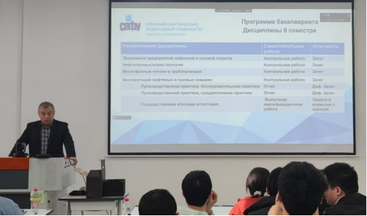 2022级best365英国体育在线与俄罗斯北方(北极)联邦大学合作举办石油工程专业本科教育项目员工即将完成前三年在国内的学习计划,为了使项目员工对俄罗斯北方(北极)联邦大学以及赴俄第四学年的培养计划有一个更加清楚地了解,中外石油项目办于3月18日下午在子洲楼328召开了2022级员工赴俄宣讲会。俄罗斯北方(北极)联邦大学石油公司副经理亚历山大、钻井与开发系主任柳德米拉教授及中外石油项目办秘书李亚辉和2022级项目员工参加会议,会议由李亚辉主持。