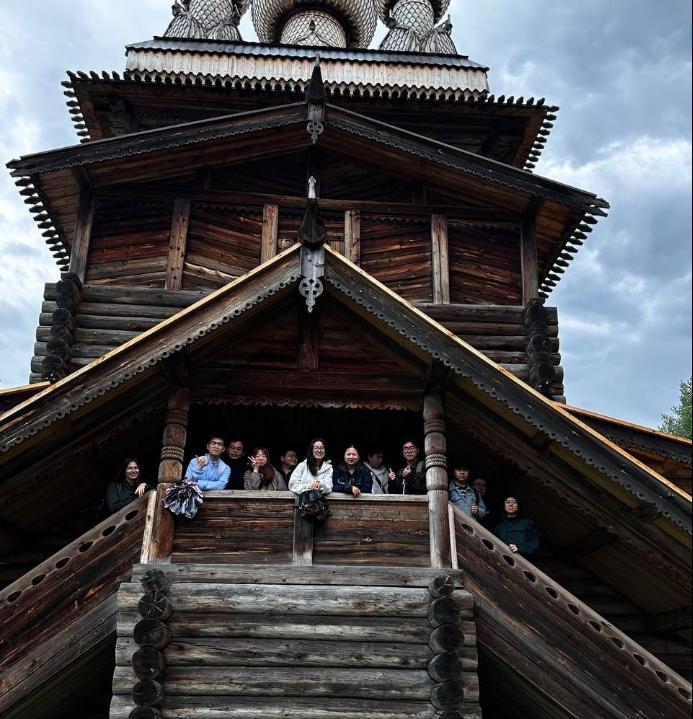 8月26日,俄罗斯北方联邦大学的语言志愿者达里娅-科瓦廖娃(Daria Kovaleva)和阿纳斯塔西娅-科斯捷琳娜(Anastasia Kostyrina)在马列-科雷利木结构建筑博物馆为项目员工上了一堂关于俄罗斯文化和历史的沉浸式课程。